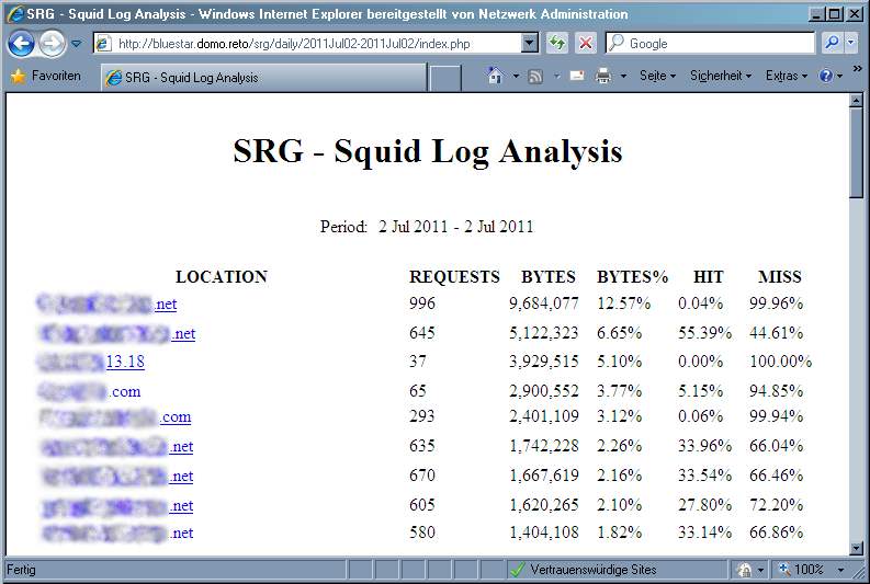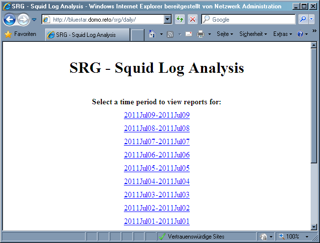 Der Linux Home Server (LHS) dient auch als Web-Proxy. Die Logdateien des Proxy-Dienstes 'squid' können mit dem Softwarepakte 'srg' im Heimnetzwerk bereitsgestellt werden.