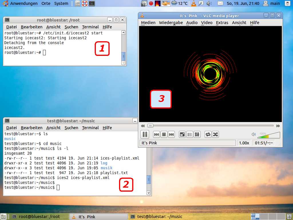 Mit den Programmpaketen icecast2 und und ices2 kann man den Linux Home Server dazu bringen, Musik ins Heimnetz zu streamen.